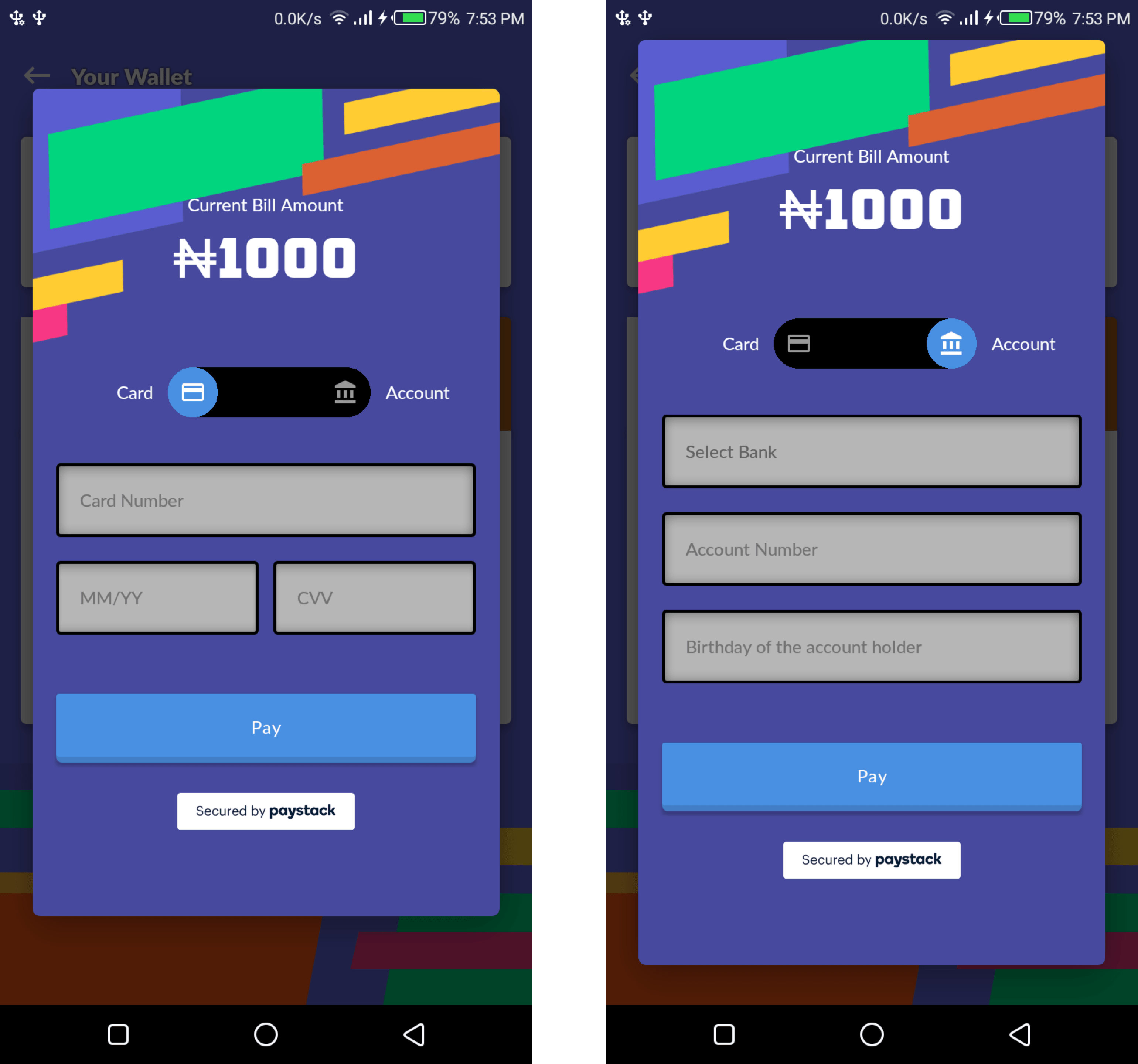 //Use Paystack's SDK chargeCard or whatever you want really.
